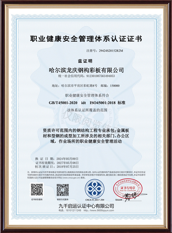 職業(yè)健康安全管理體系認(rèn)證證書