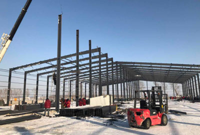 北方的冬天,滴水成冰 施工現(xiàn)場早已銀裝素裹 工廠的每個角落 每一塊場地 龍慶人都